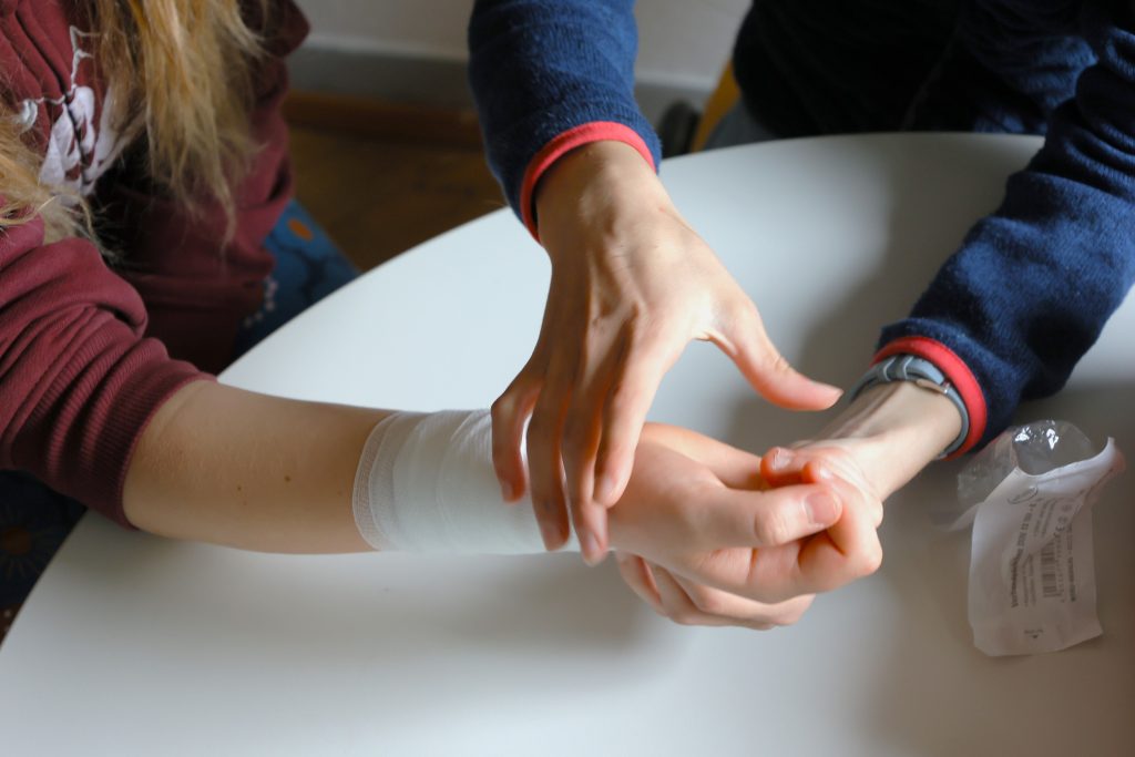 • die Versorgung von Wunden (Schürfwunden, Platzwunden, Schnittwunden)